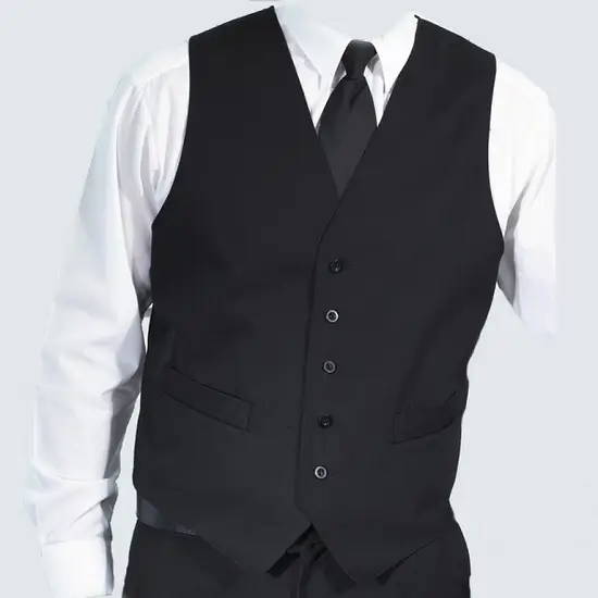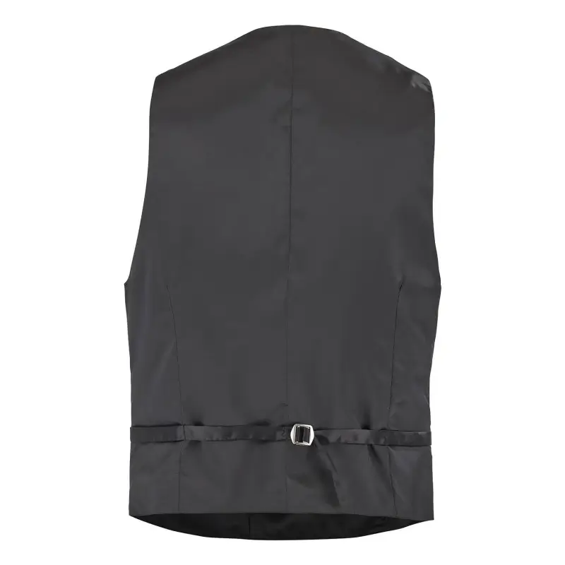 Ce gilet de service professionnel pour homme allie élégance, confort, durabilité et aisance de mouvement. Conçu dans un tissu confortable, il est entièrement doublé. Sa coupe est ajustée, il se ferme par 5 boutons et dispose d’une boucle réglable.